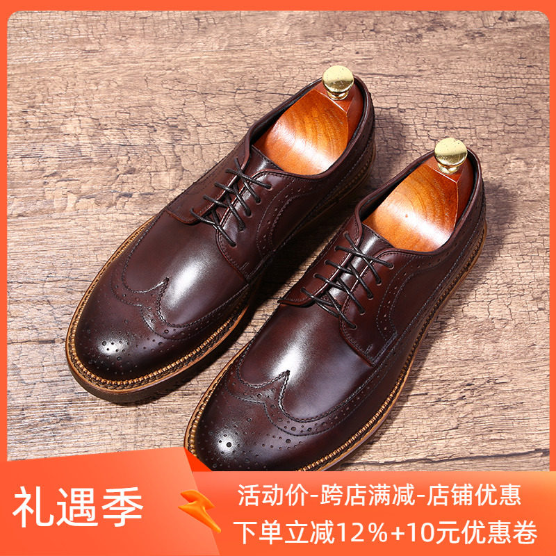 Denver英伦复古风做旧布洛克雕花板鞋真皮商务运动休闲鞋流行男鞋