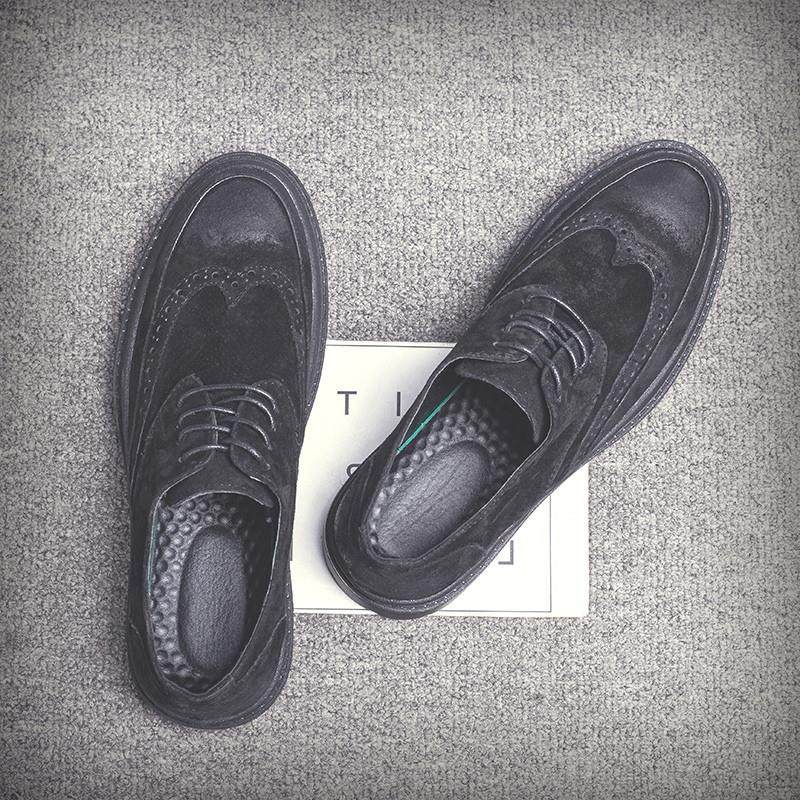 男士皮鞋韩版布洛克男鞋夏季百搭英伦商务休闲潮鞋厚底翻毛皮板鞋