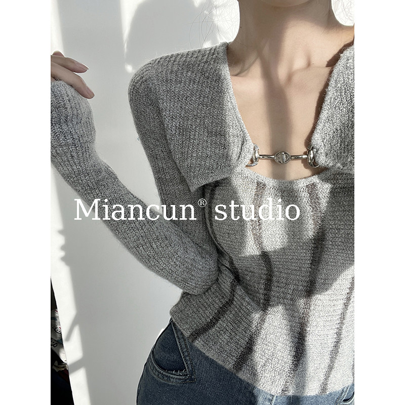 韩版复古木耳边吊带马甲背心女外搭短款洋气俩件套长袖毛衣上衣秋