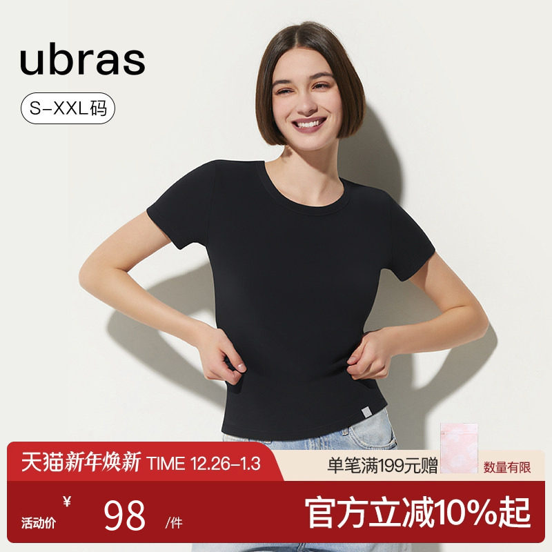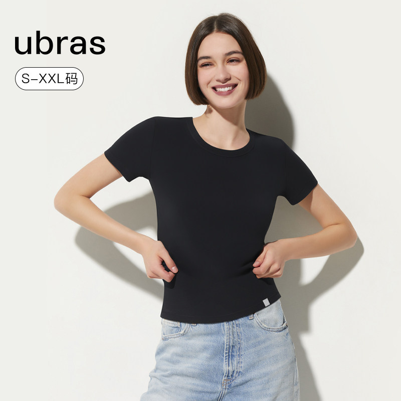 ubras圆领T恤白色吊带背心外搭女士短袖纯棉内搭上衣女打底