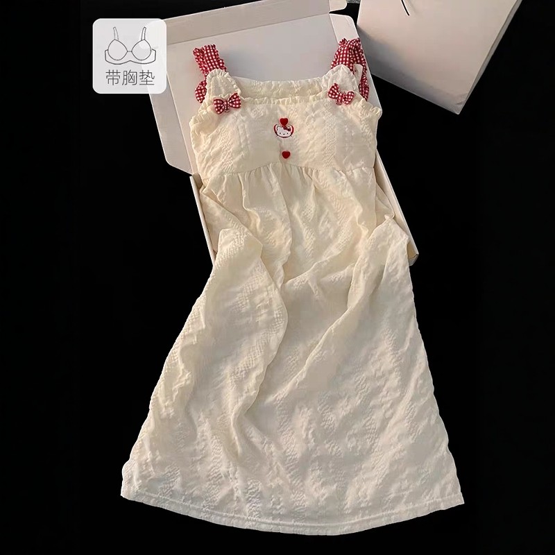 格子凯蒂猫带胸垫睡裙女款夏季2025新款性感吊带背心可外穿连衣裙