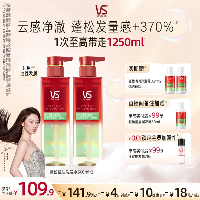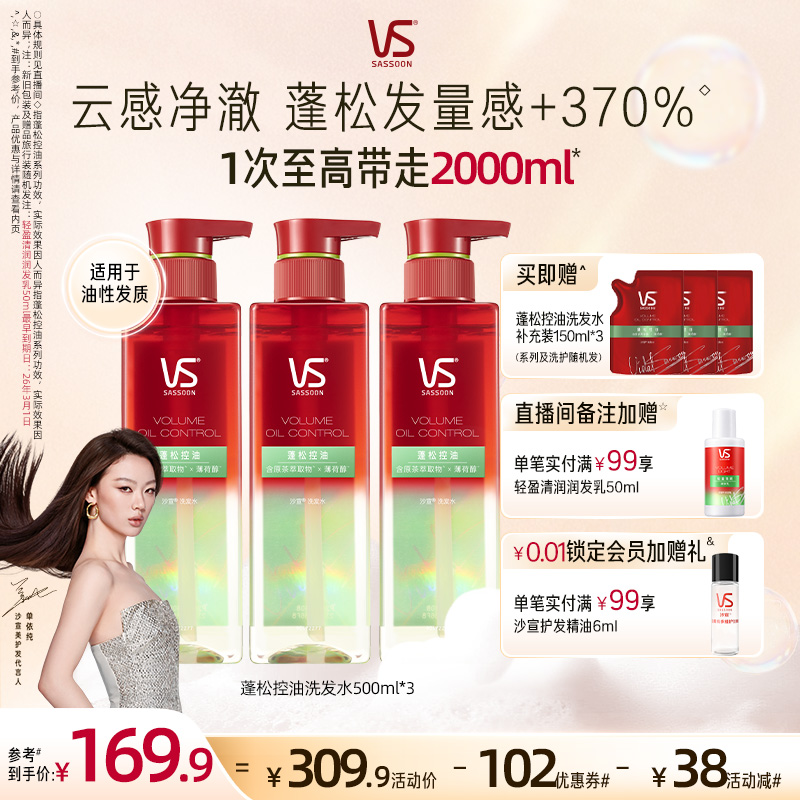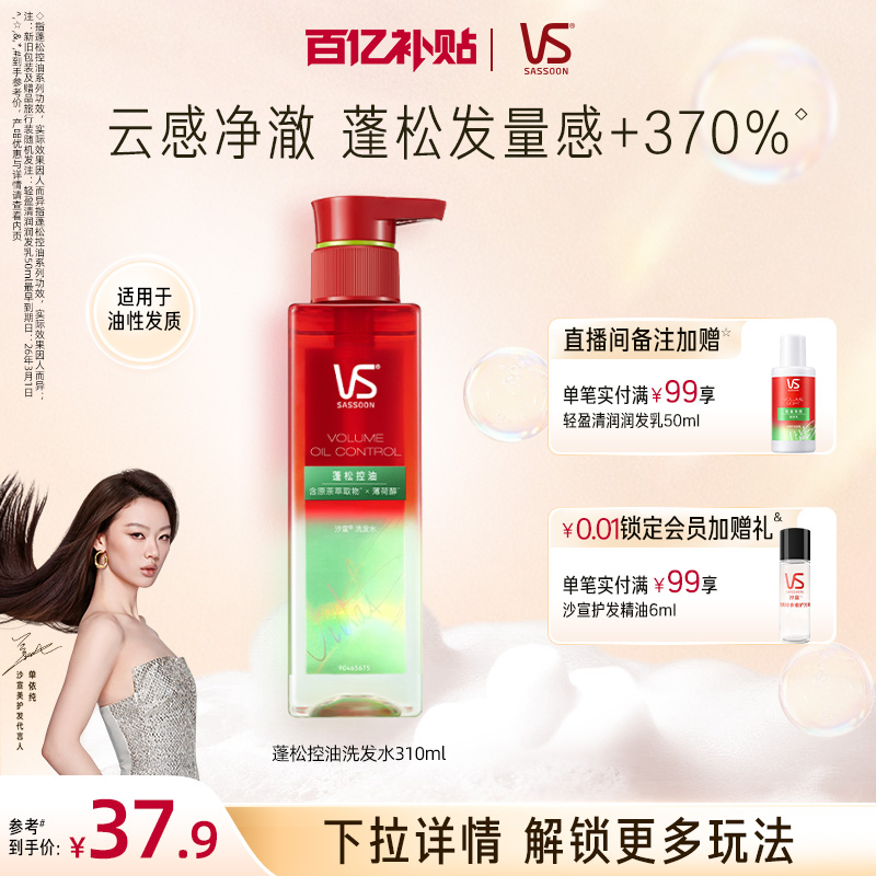 【直播专享】VS沙宣蓬蓬瓶控油清爽水润蓬松洗发水官方正品任选