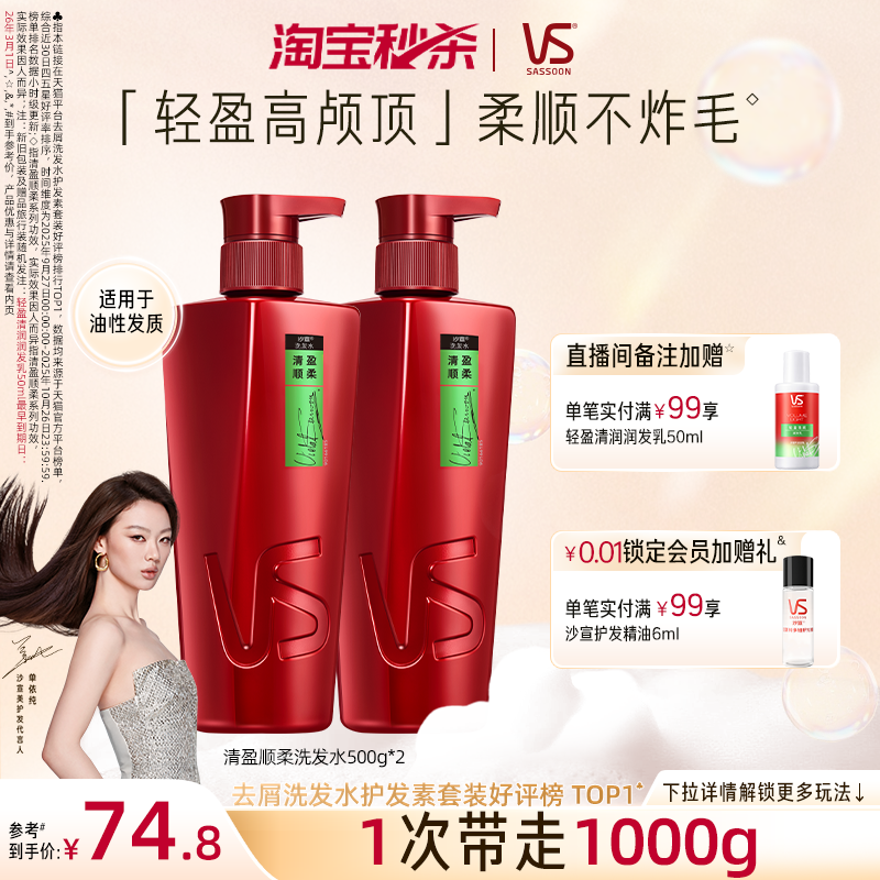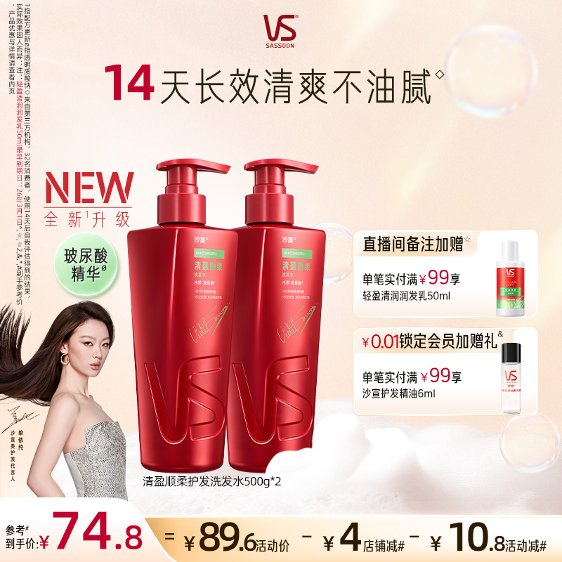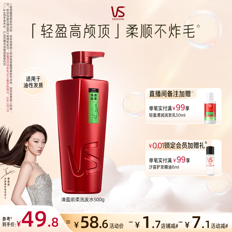 VS沙宣洗发水官方旗舰店清盈顺柔洗发水护发素蓬松顺滑洗发露套装