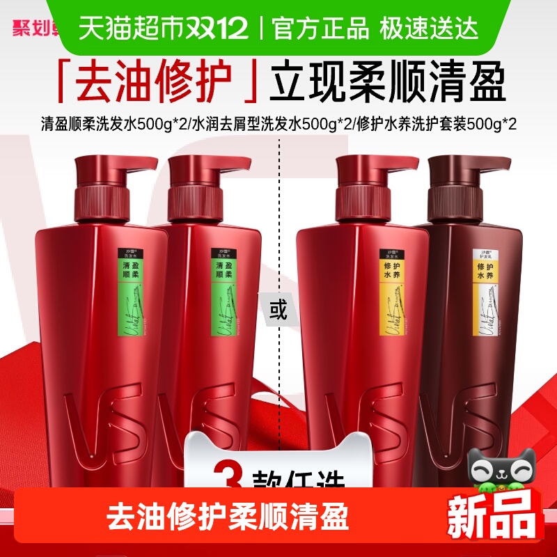 VS沙宣洗发水控油蓬松去屑/修护/清盈顺柔任选洗发露护发素套装