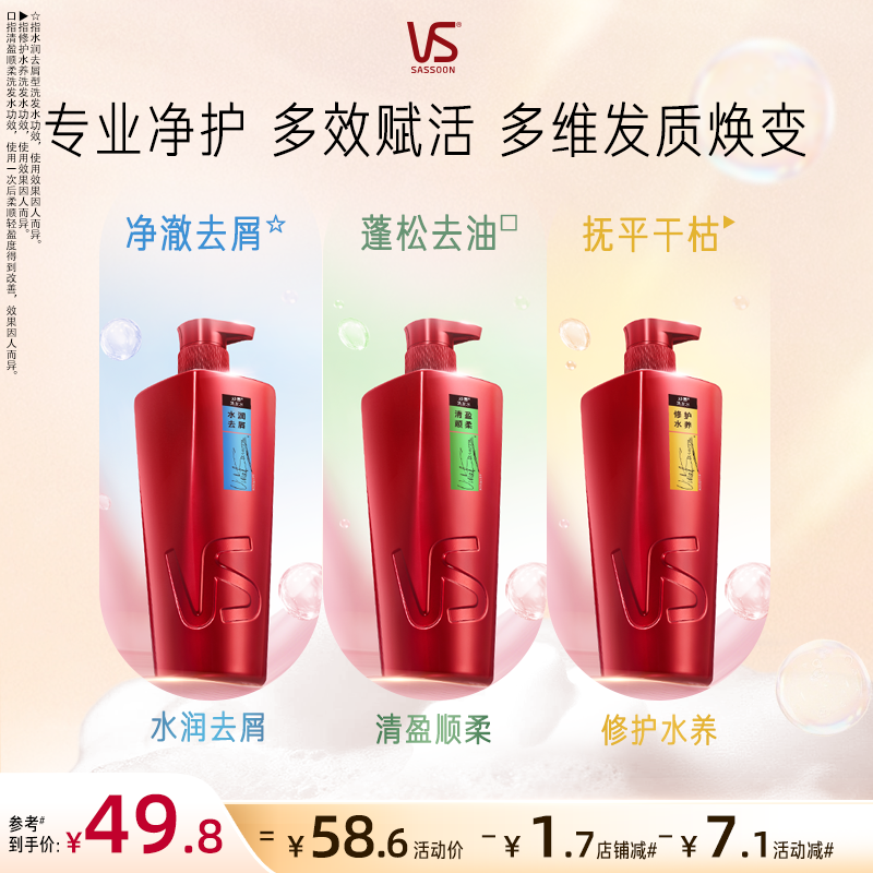 【单依纯同款】VS沙宣洗发水修护/清盈/去屑蓬松任选正品官方