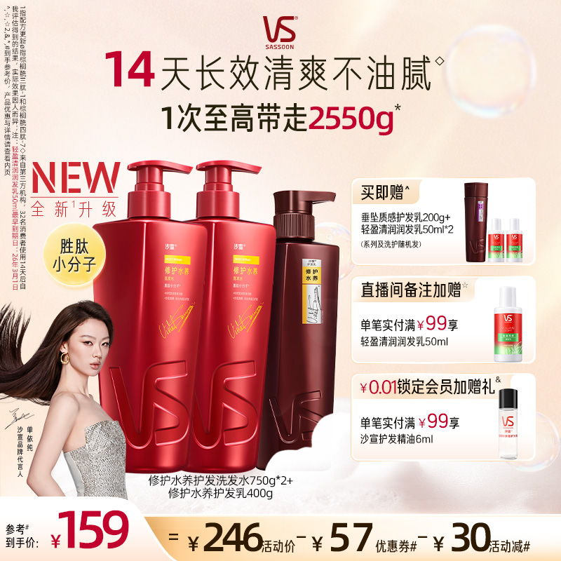 vs沙宣洗发水400ml/g水润修护清盈垂坠清盈补水保湿蓬松男女正品