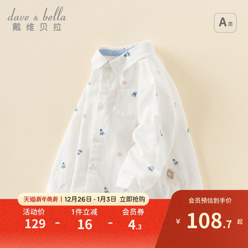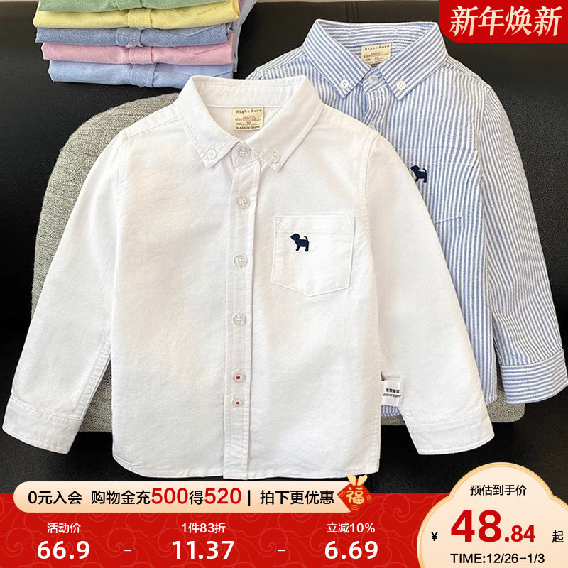 戴维贝拉男童衬衫儿童白色衬衣2025秋装小童宝宝婴儿纯棉衣服男孩