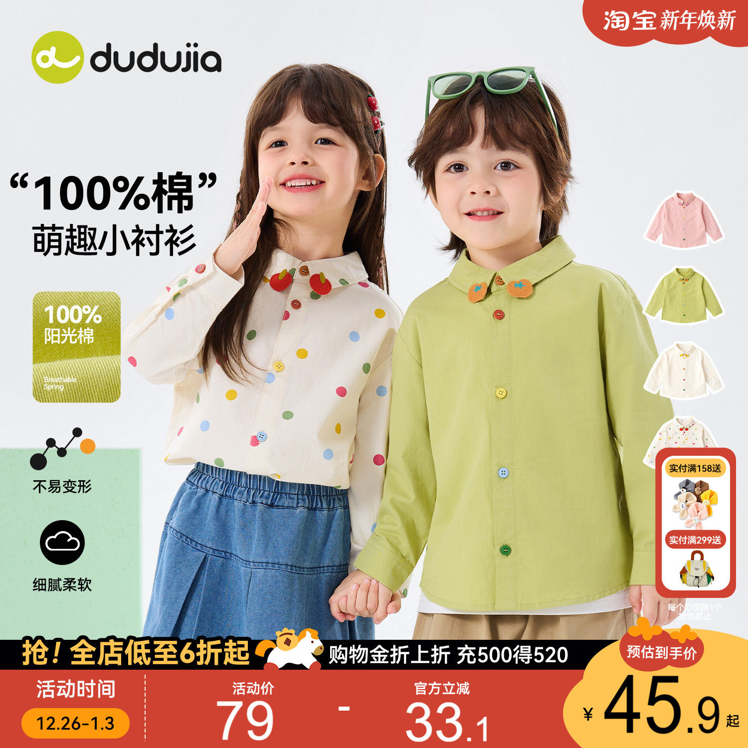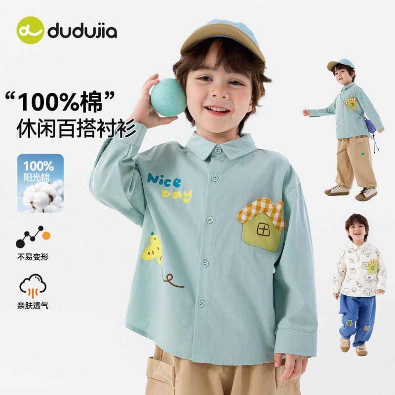 【100%棉】dudujia儿童衬衫纯棉男童上衣内搭女童外套洋气春秋a类