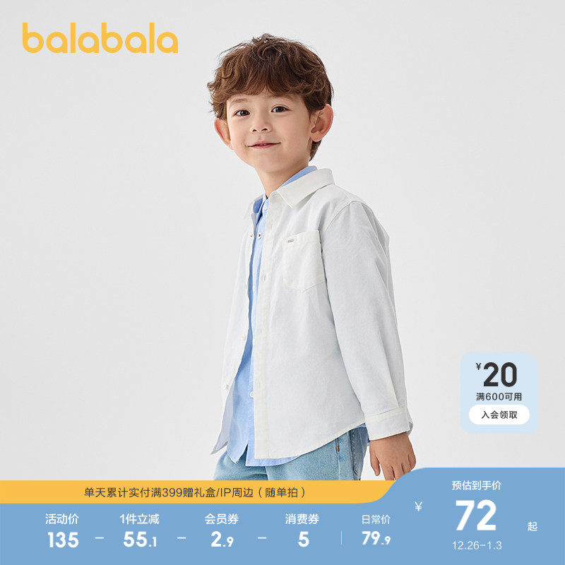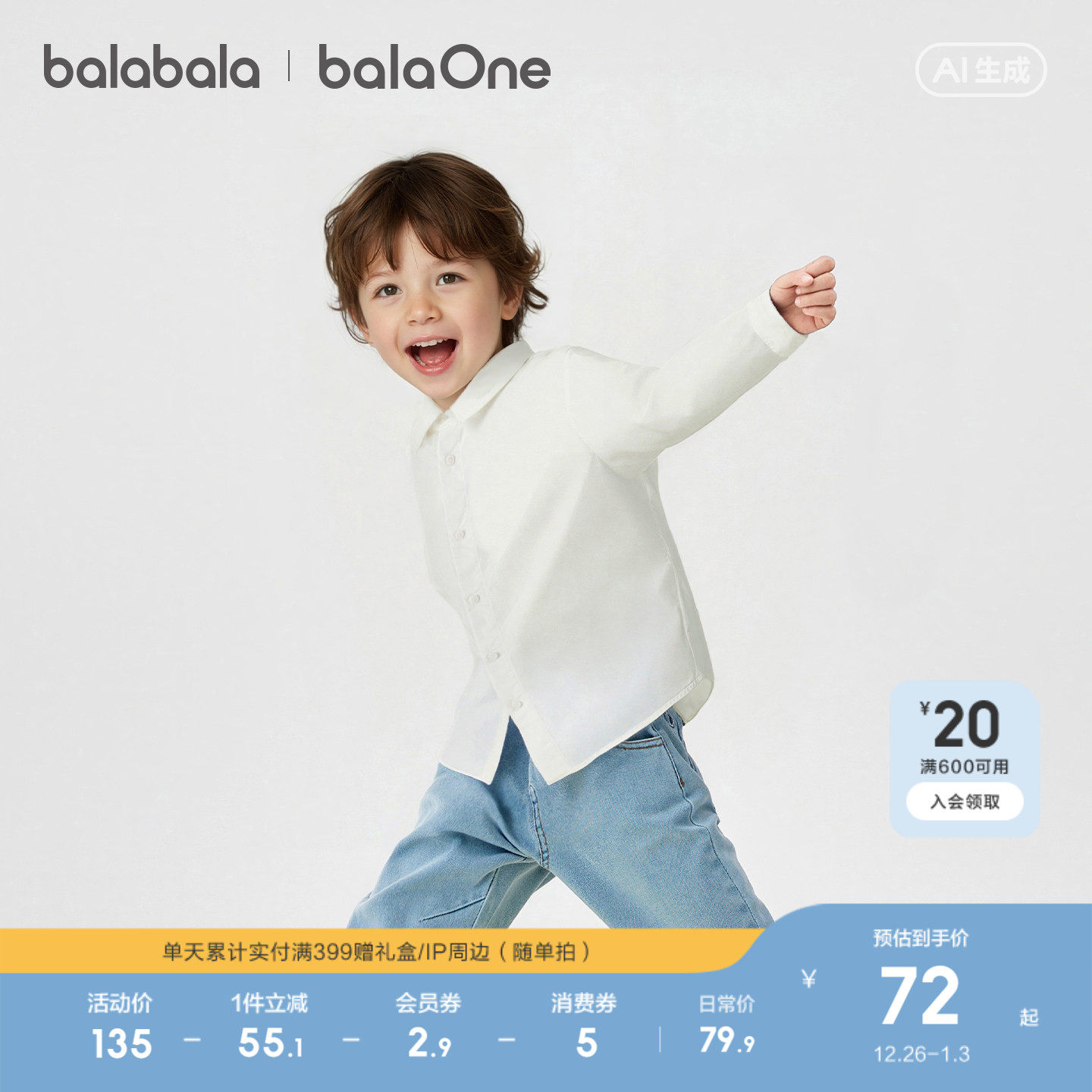 巴拉巴拉童装男童长袖衬衫宝宝2026新款春装纯棉亲肤纯色衬衣时尚