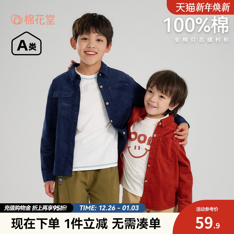【100%棉】棉花堂儿童衬衫男童衬衫灯芯绒外套纯棉童装上衣春秋装