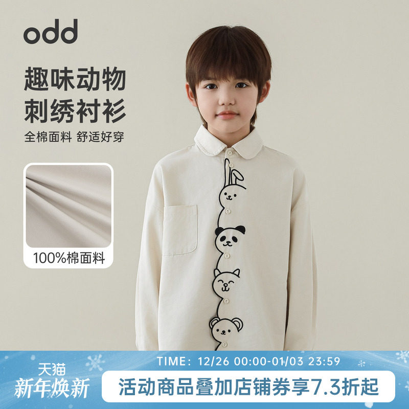 oddtails男童衬衫纯棉春秋款儿童动物园刺绣卡通衬衣2025新款上衣