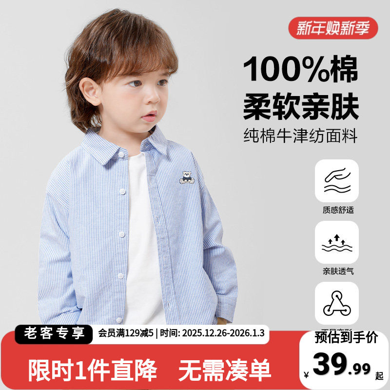 贝肽斯儿童衬衫男童衬衣长袖秋冬宝宝上衣纯棉衬衫百搭2025新款S