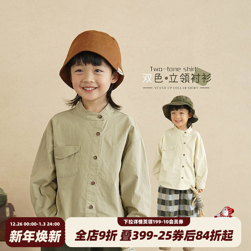 砚台家儿童森系长袖衬衫帅气秋装新款男童纯棉衬衣男宝宝内搭上衣