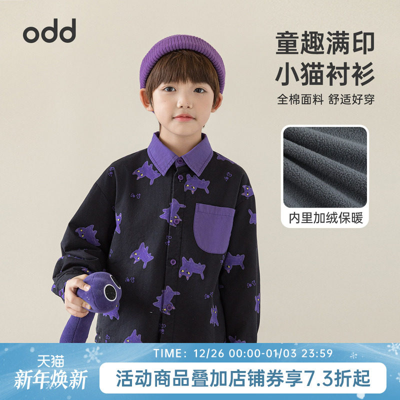 oddtails男童纯棉印花衬衫儿童春秋衬衣2025新款原宿风男孩上衣潮