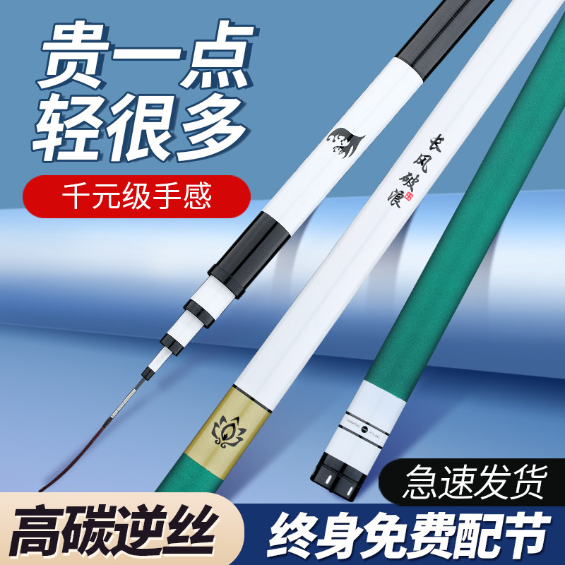 买一送一浪尖短节溪流竿鱼竿手竿超轻超硬钓鱼竿28调渔具套装鲫鲤