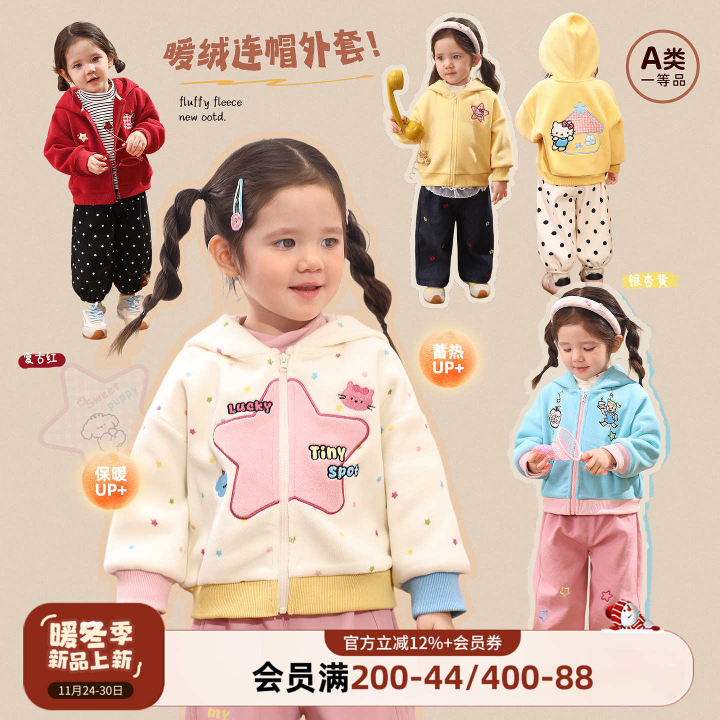 小O爸女婴童 女宝外套摇粒绒抓绒衣冬季婴儿保暖宝宝加绒连帽上衣
