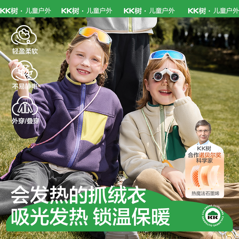 KK树儿童摇粒绒外套男童抓绒内胆女孩早秋保暖加绒上衣2025年新款