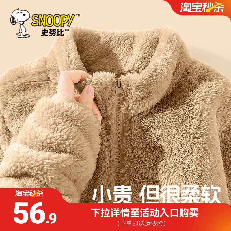 史努比童装儿童摇粒绒外套内胆男童加绒加厚冬装女童毛毛抓绒衣冬