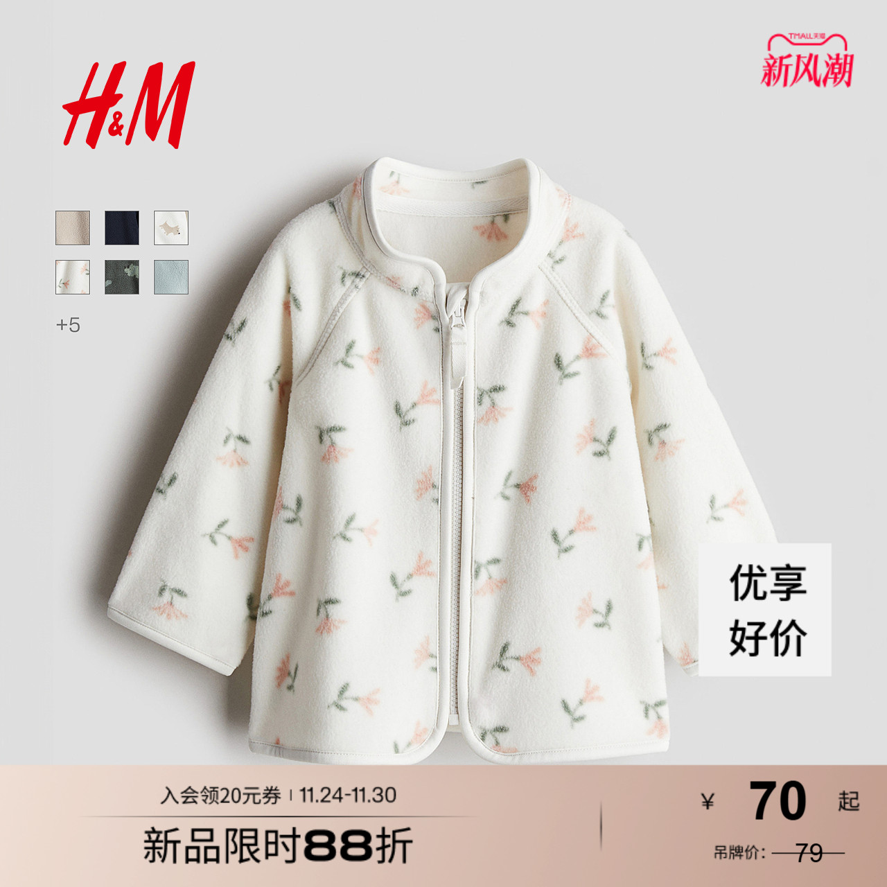 HM童装男婴女婴外套秋季洋气抓绒保暖外出拉链长袖开衫1239729