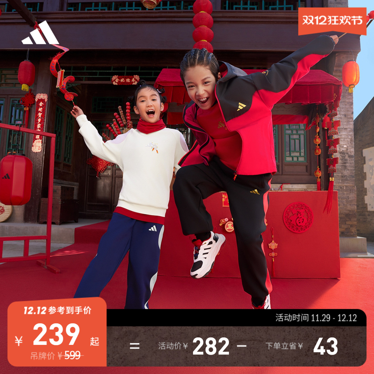 男女小童双拉链宽松撞色抓绒连帽外套秋季adidas阿迪达斯轻运动