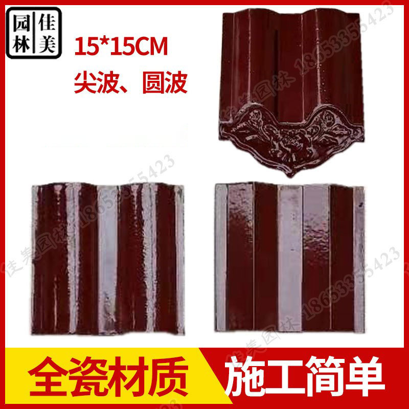 波纹瓦双圆瓦琉璃瓦补漏陶瓷瓦围墙瓦三曲瓦屋檐15cm屋檐瓦装饰瓦