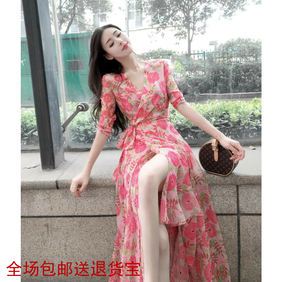 刘美人沙滩裙海边度假裙子女2025新款夏季气质中长款碎花连衣裙