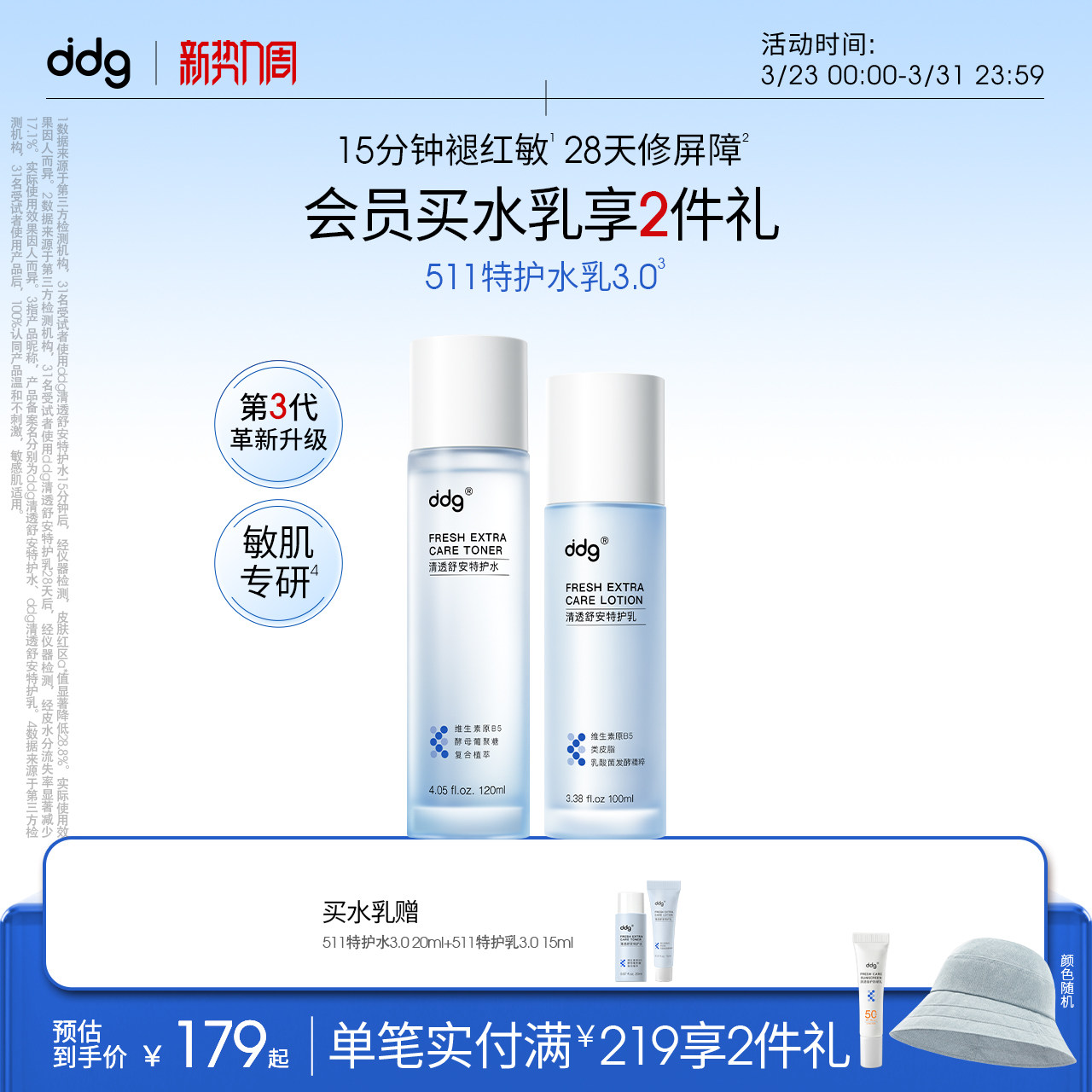 ddg511特护水乳3.0套装女补水保湿滋润祛红修护维稳学生护肤品