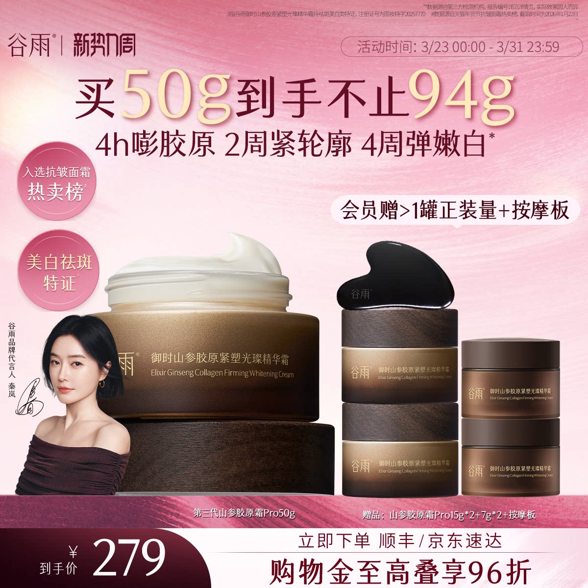 【抗皱+美白】谷雨山参胶原霜PRO紧致抗皱面霜淡纹保湿修护护肤品