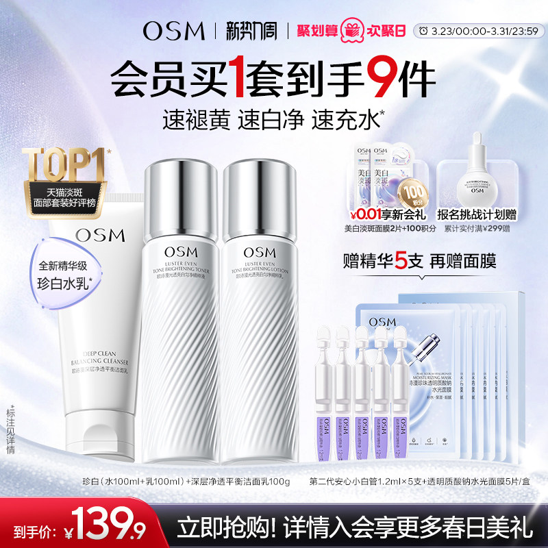 【任选2件】欧诗漫淡斑提亮控油美白水乳抗老紧致眼膜洁面护肤品
