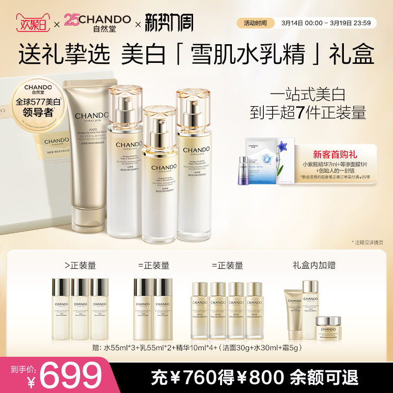 【周翊然同款】自然堂577美白淡斑护肤套装雪肌水乳精减黄提亮