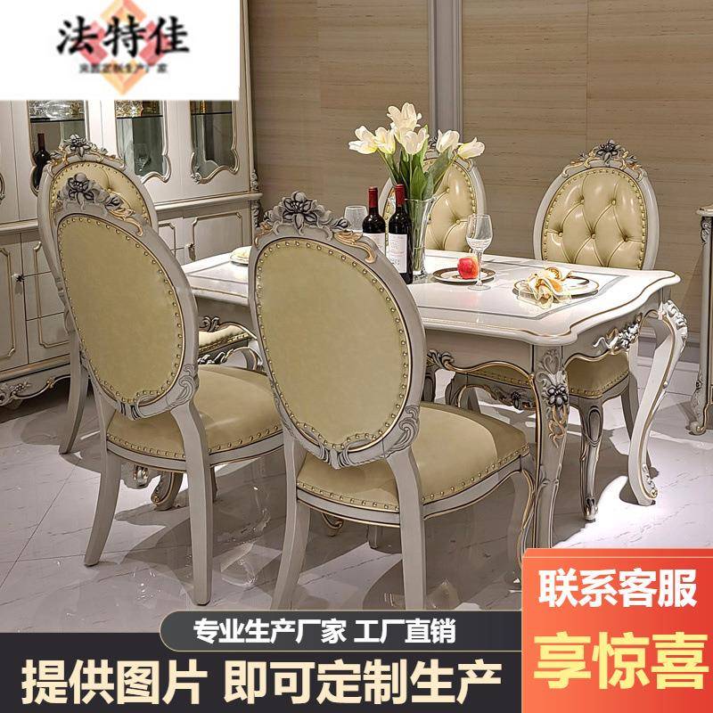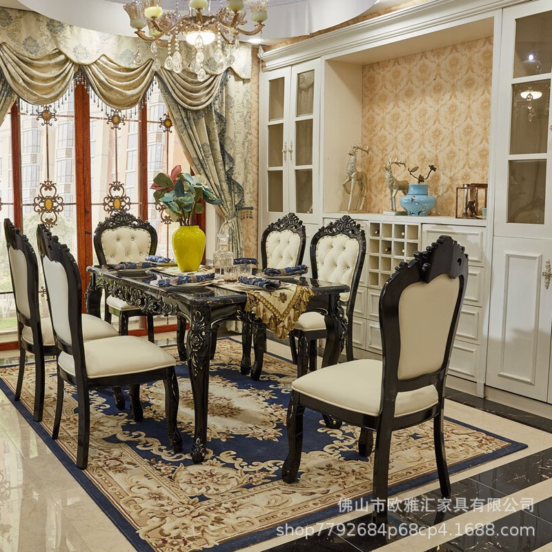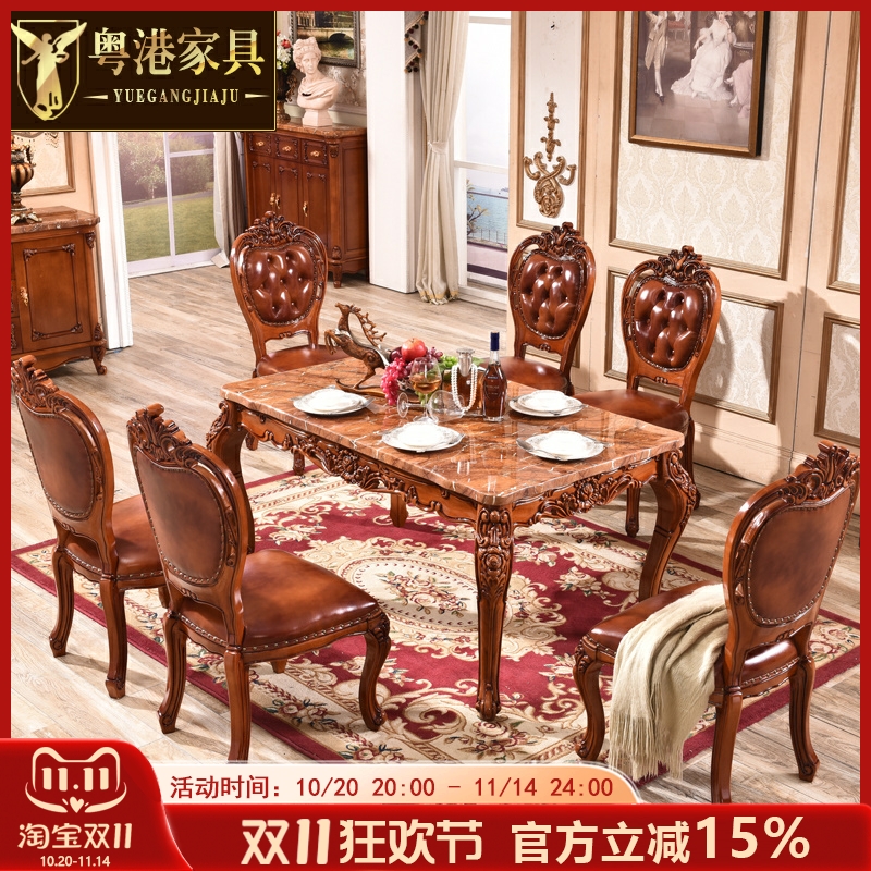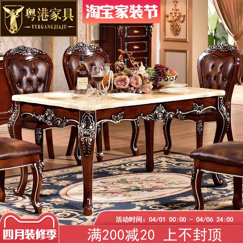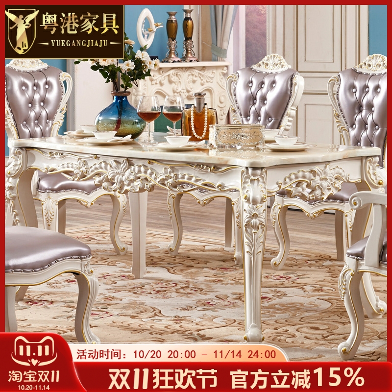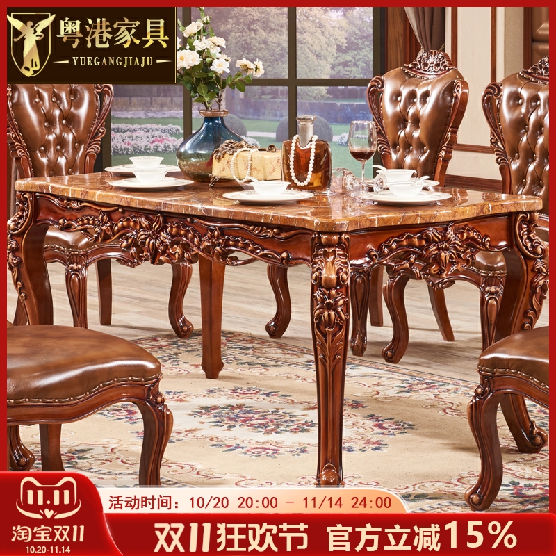 欧式实木雕花餐桌椅组合4人6人桌子大理石餐桌长方形奢华家具套装