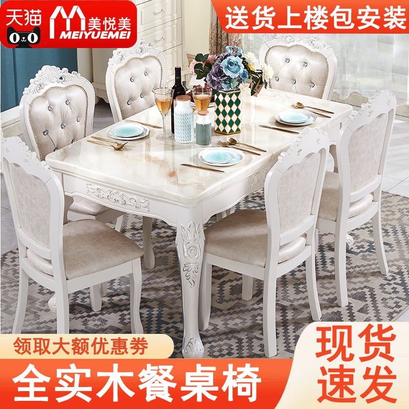 欧式餐桌椅组合实木长方形大理石简约现代4人6人小户型家用饭桌子