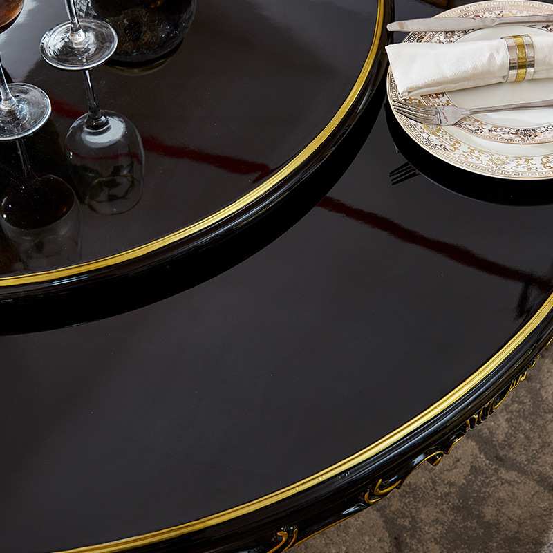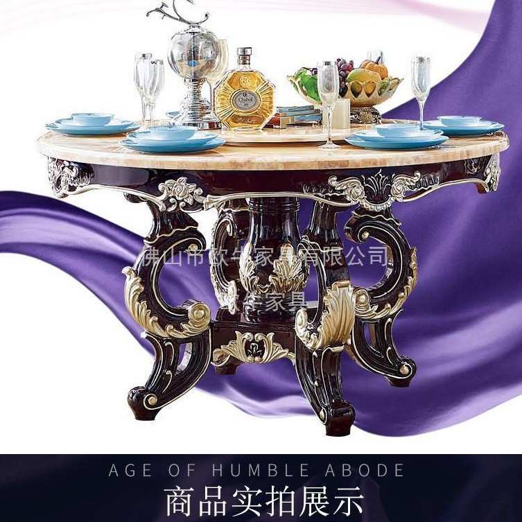欧式餐桌椅组合大理石圆桌带转盘6人8人家用实木雕花豪华圆形饭桌