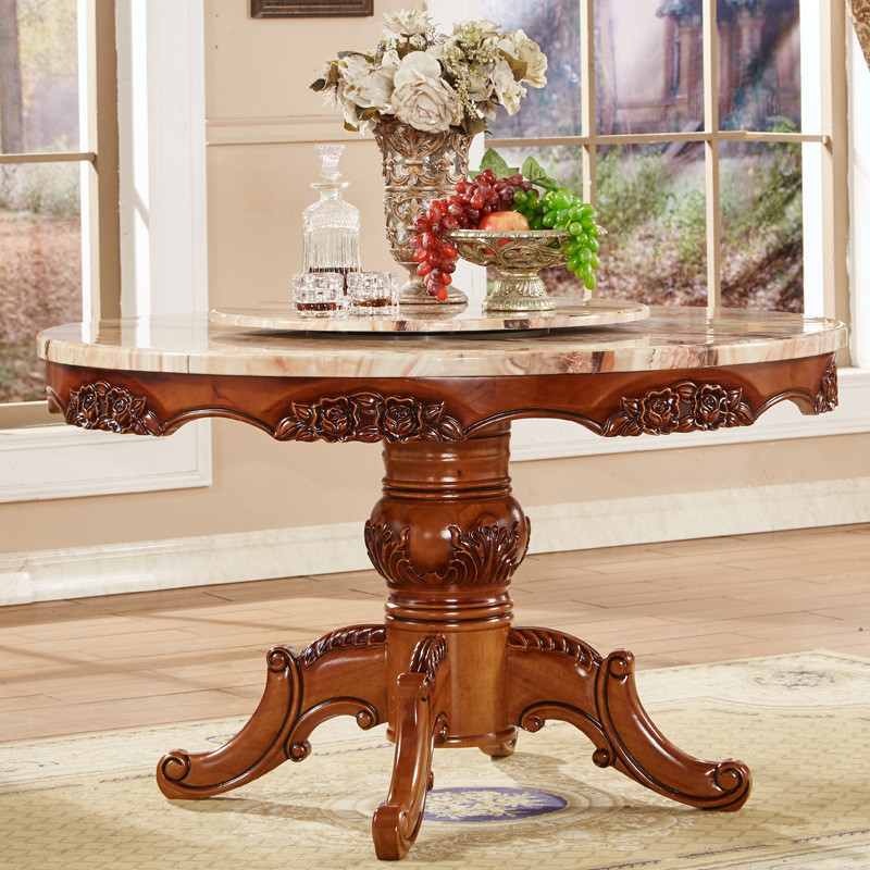 欧式餐桌椅组合大理石带转盘圆桌奢华6人美式饭桌实木家用小户型