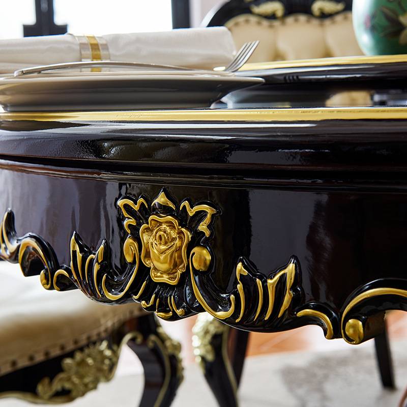 亚历山大欧式实木手工雕花餐桌椅组合法式6人圆餐桌别墅餐厅家具