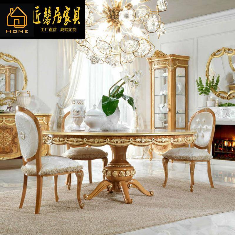 欧式餐桌椅组合长方形全实木雕花餐台饭桌6人豪华法式宫廷风金色