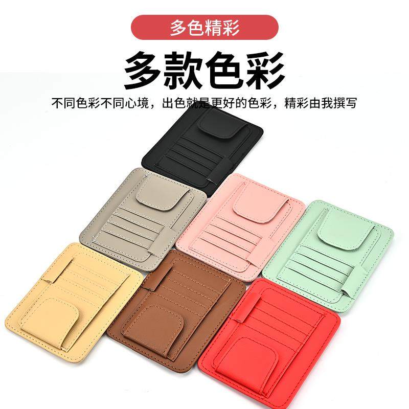 汽车用车载收纳袋遮阳板卡片夹pu皮驾驶证票据卡包套皮革眼镜夹