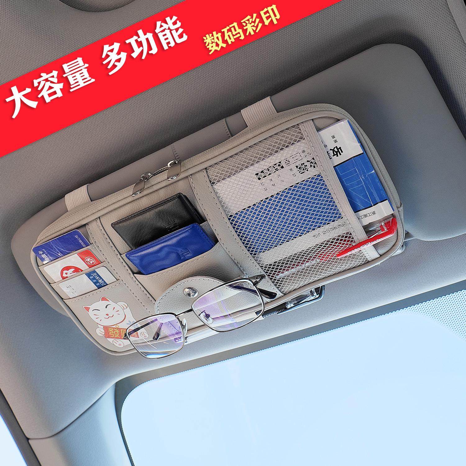 汽车遮阳板收纳多功能车载眼镜夹架车内驾驶证包票据卡片夹收纳袋