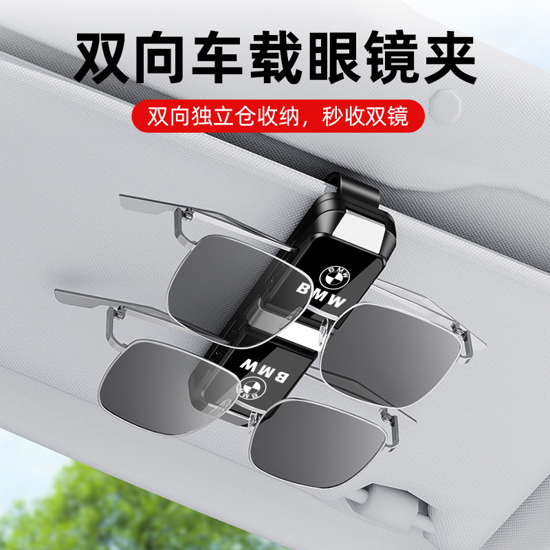双向车载眼镜夹多功能遮阳板挂太阳镜墨镜架卡片票据夹子收纳神器