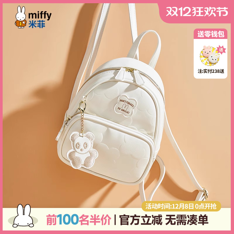 米菲双肩包2025新款简约压花纯色时尚休闲通勤甜美学生书包背包女