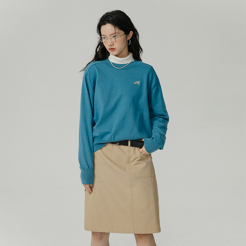 omont蛋挞家 字母刺绣针织衫女秋冬新款复古圆领宽松打底衫上衣
