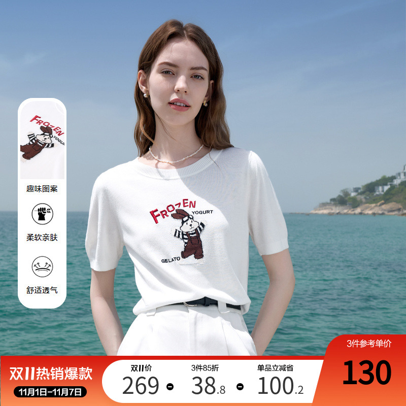 betu百图可爱童趣刺绣针织衫女短袖2025年夏季新款白色毛线衣薄
