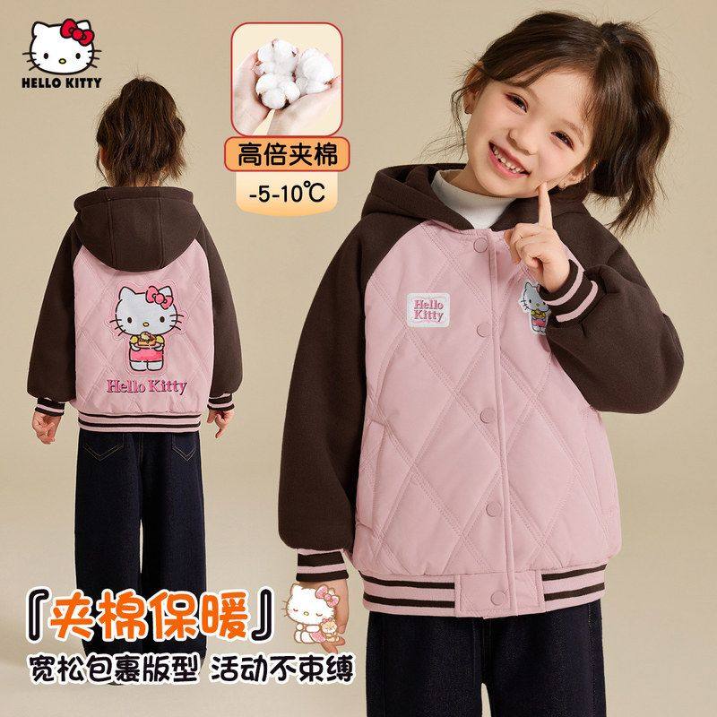 kt猫女童棉衣外套儿童夹棉上衣小学生女孩连帽棉服中童冬装厚衣服