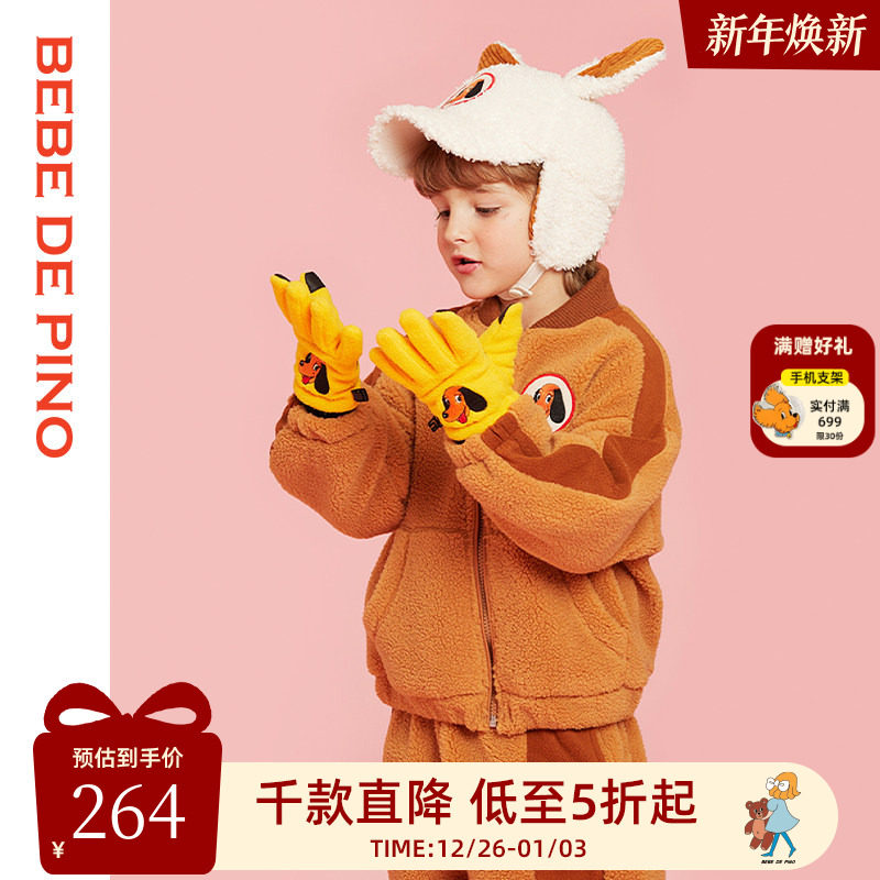 BEBEDEPINO贝贝品诺冬季新款中童男女宝拼色毛绒外套儿童冬装上衣