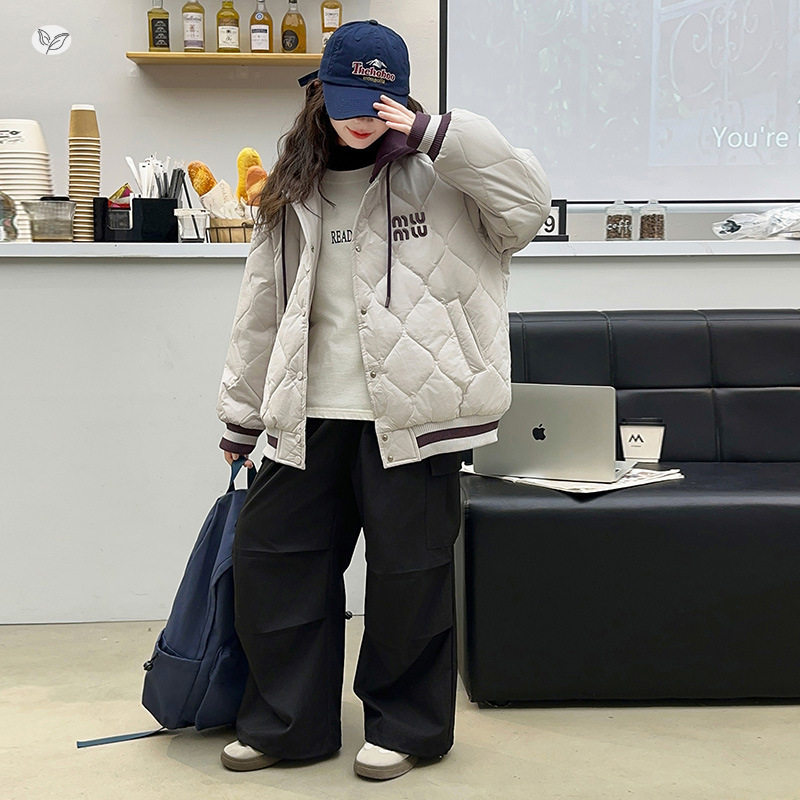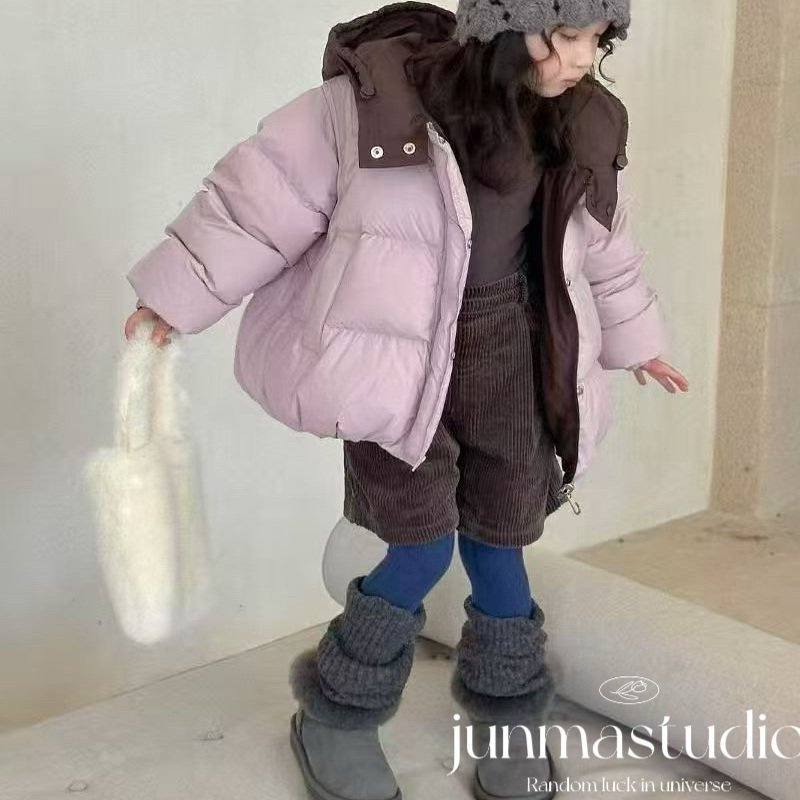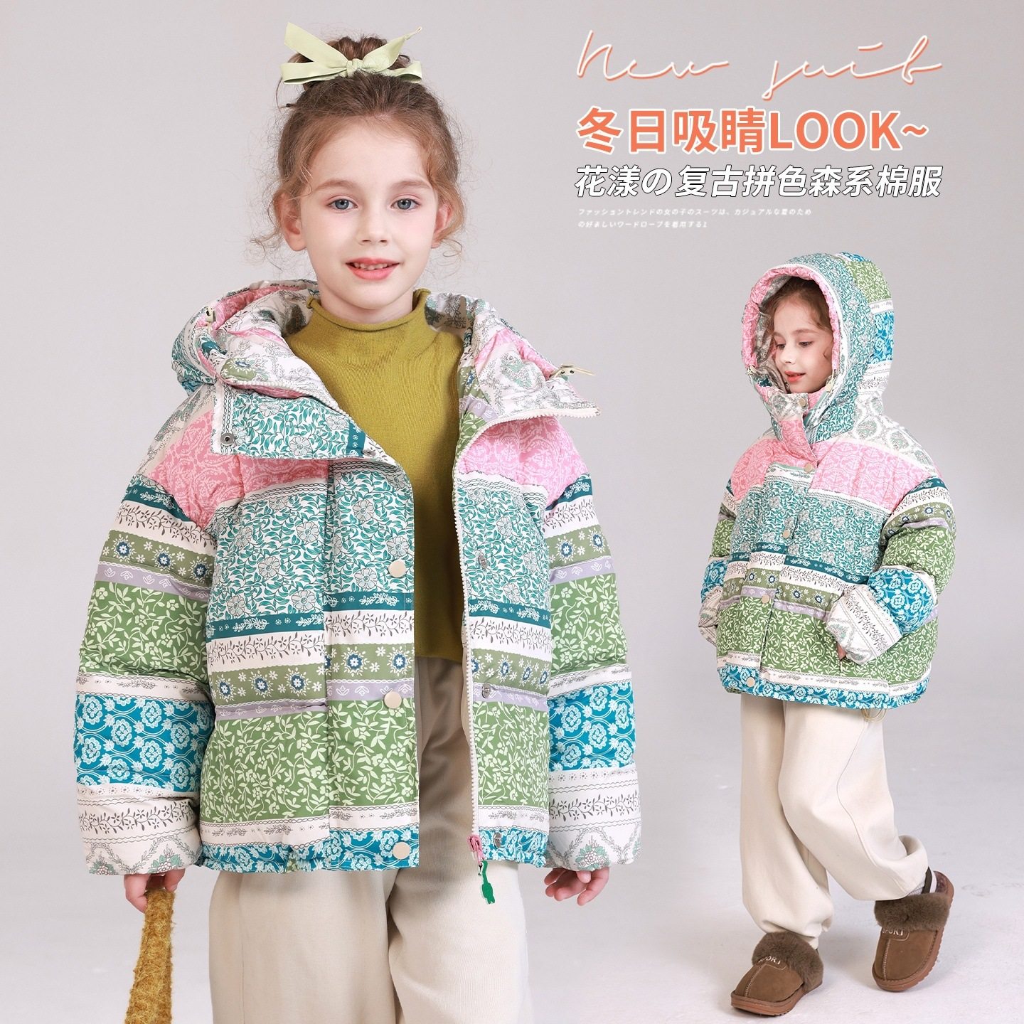 小中童新款洋气连帽外套2025韩版潮流冬装女童洋气加厚保暖棉服