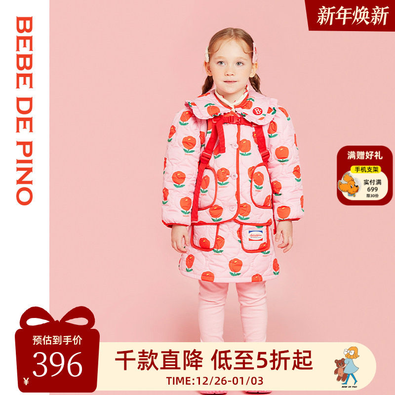 BEBEDEPINO贝贝品诺冬季新款中童女宝宝冬装上衣满印郁金香外套