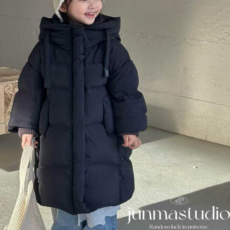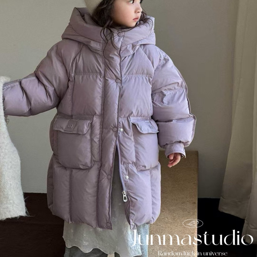 品牌童装男女童儿童中童冬装新款连帽中长款羽绒服白鸭绒保暖外套