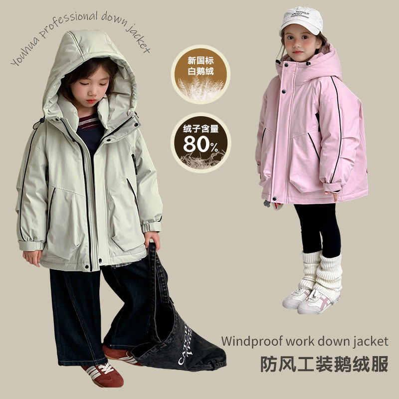 品牌童装女童儿童中童冬装新款三防连帽羽绒服白鸭绒加厚保暖外套