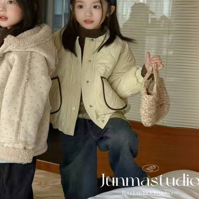 品牌童装女童宝宝儿童中童冬装休闲风棉衣棉服夹棉外套加绒牛仔裤