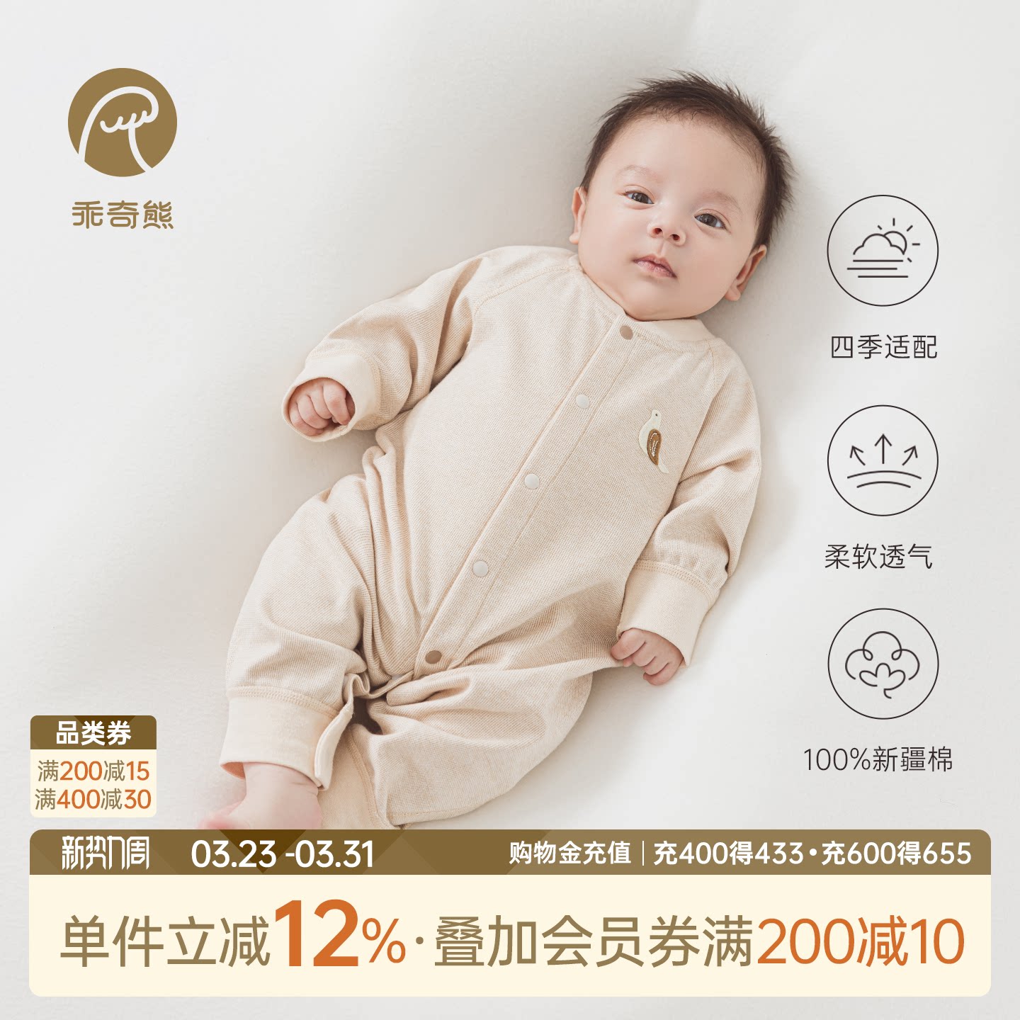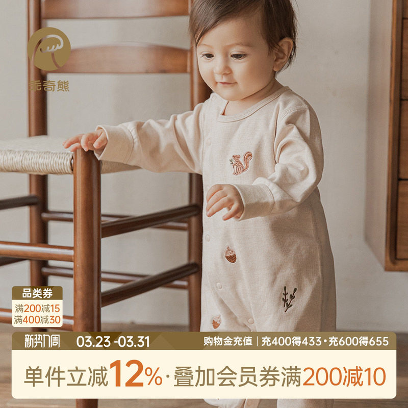 乖奇熊婴儿纯棉连体衣春秋季睡衣无骨居家服男女宝宝哈衣爬服春装